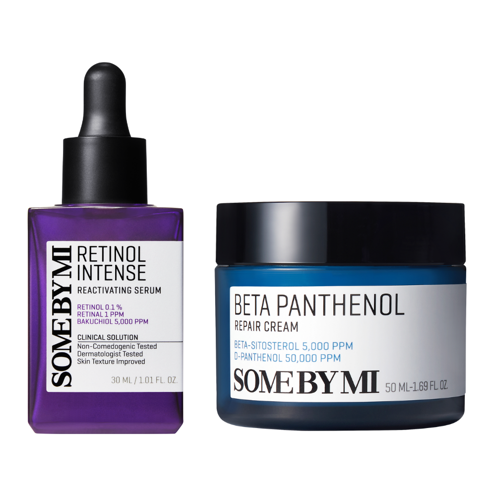 - بعد روتين تنظيف البشرة المسائي: وزعي 3:4 قطرات من سيروم ريتينول للعناية المركزة على بشرتك ثم دلكي برفق حتى تمام امتصاص السيروم، وبعد 10:15 دقيقة ضعي كمية مناسبة من كريم بيتا بانثينول، ثم قومي بتدليكها برفق حتى يتم امتصاصها تمامًا